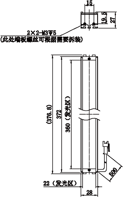 | 发光区直径 | 360 mm × 22 mm | |