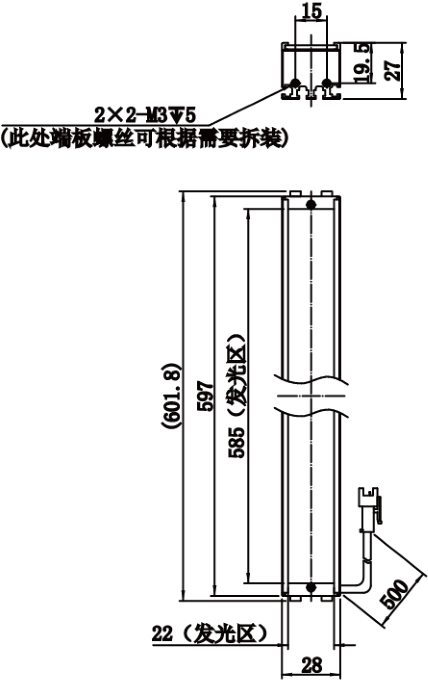 | 发光区直径 | 585 mm × 22 mm | |