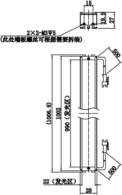| 外形尺寸 | 1002 mm × 28 mm × 27 mm | |