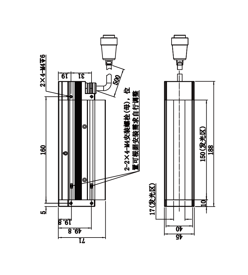 | 发光区尺寸 | 150 mm × 17 mm | |