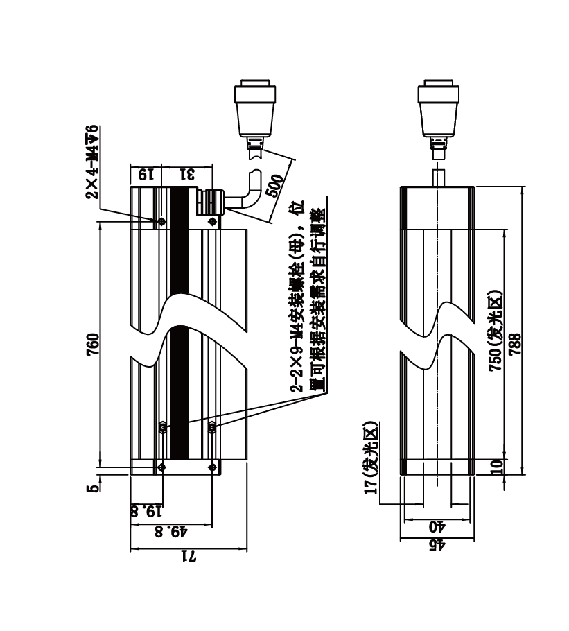 | 发光区尺寸 | 750 mm × 17 mm | |