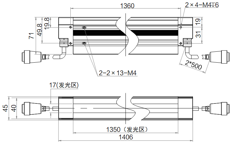 | 发光区尺寸 | 1350 mm × 17 mm | |