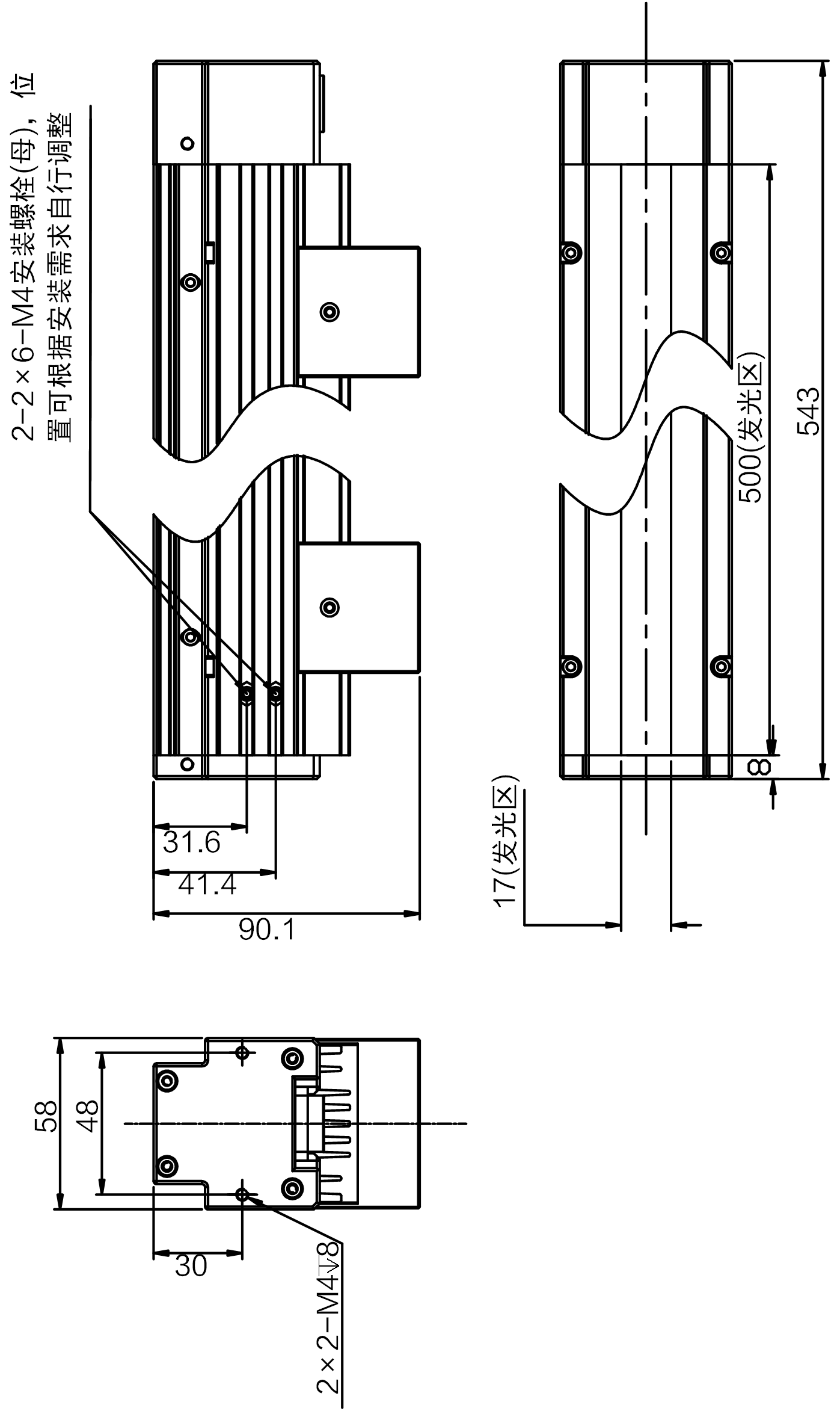 | 发光区尺寸 | 500 mm × 17 mm | |