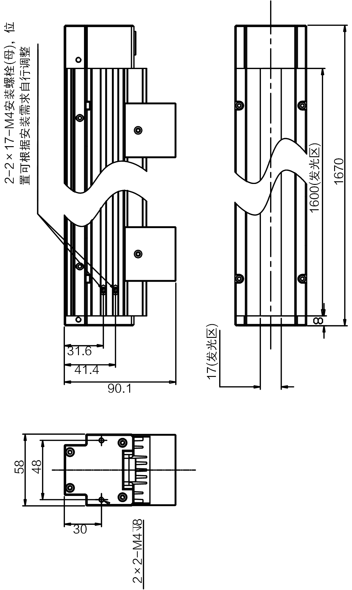 | 发光区尺寸 | 1600 mm × 17 mm | |