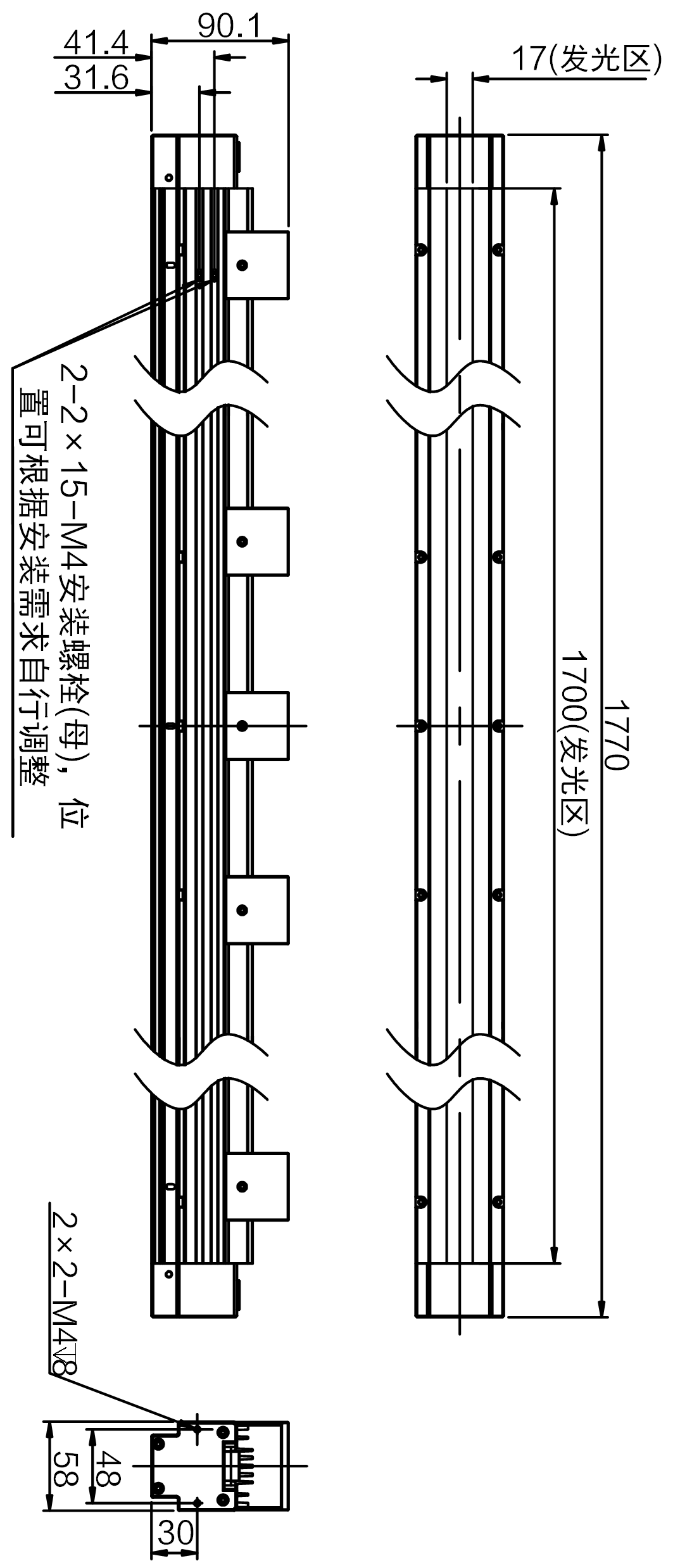 | 发光区尺寸 | 1700 mm × 17 mm | |