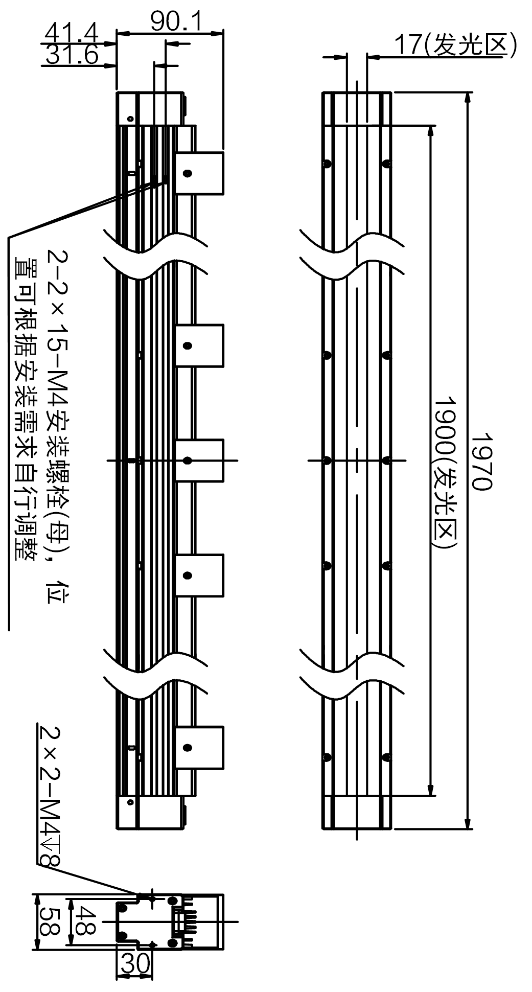 | 发光区尺寸 | 1900 mm × 17 mm | |