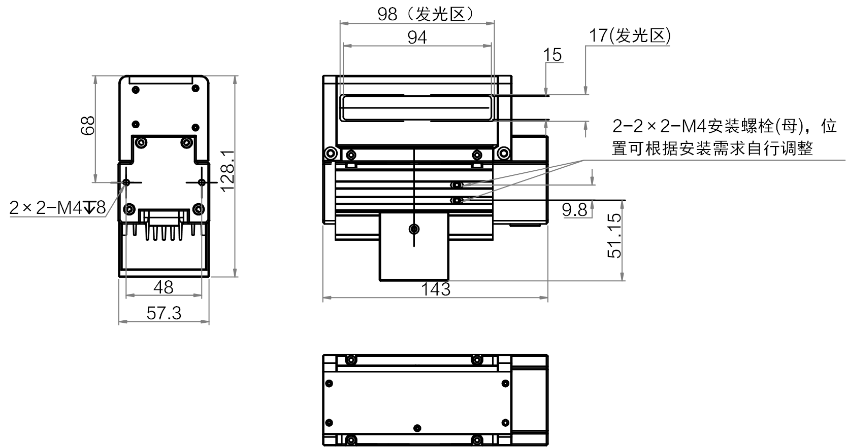 | 发光面尺寸 | 98 mm × 17 mm | |