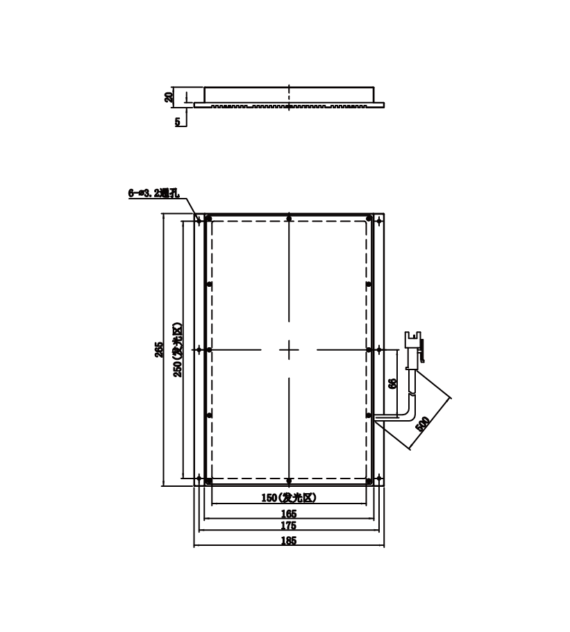 | 发光区尺寸 | 250 mm × 150 mm | |
