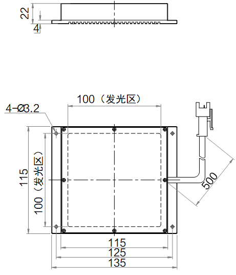 | 发光区尺寸 | 100 mm × 100 mm | |