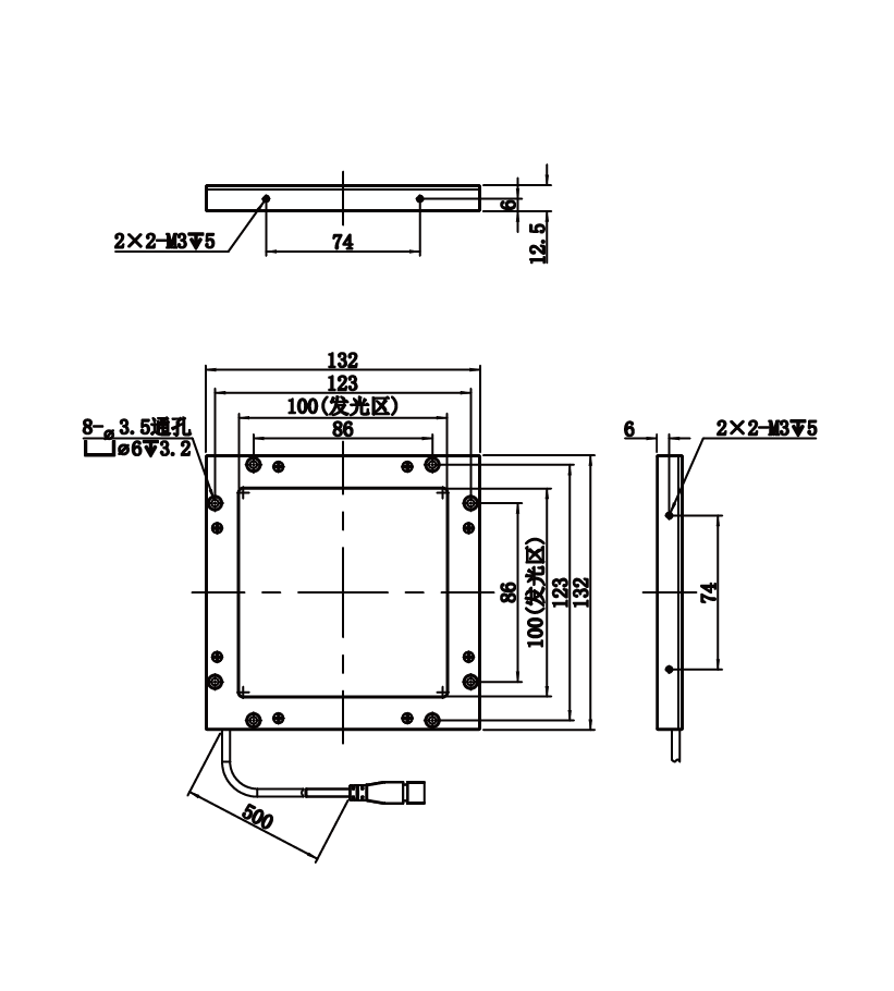 | 发光区尺寸 | 100 mm × 100 mm | |