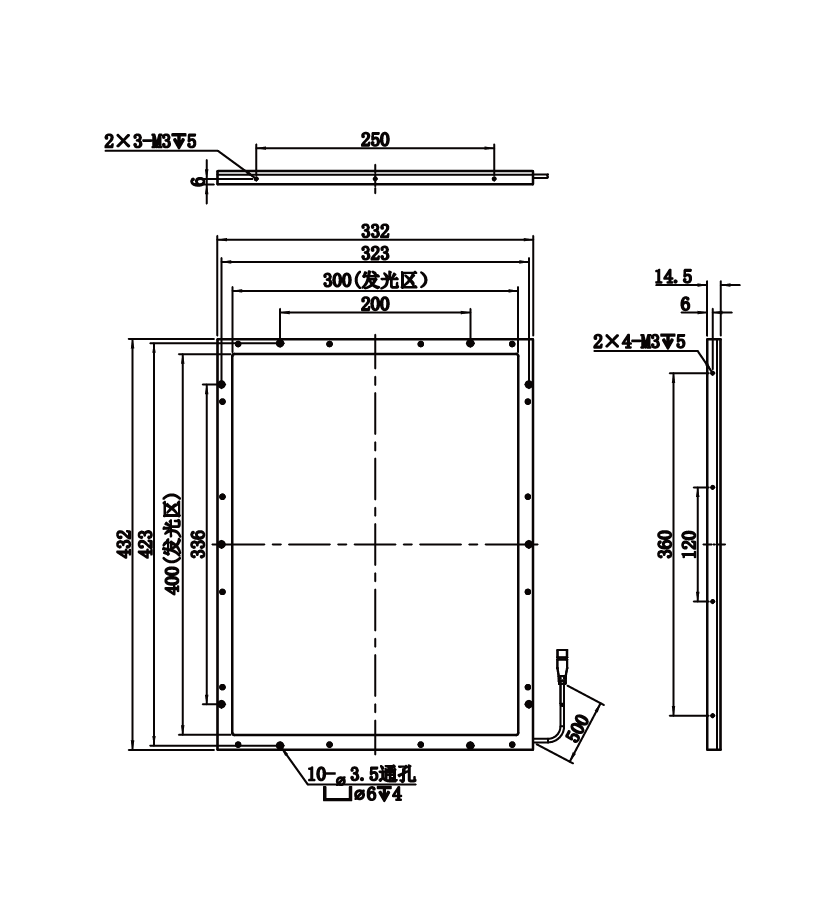 | 发光区尺寸 | 400 mm × 300 mm | |