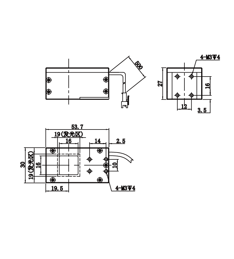 | 发光区尺寸 | 19 mm × 19 mm | |