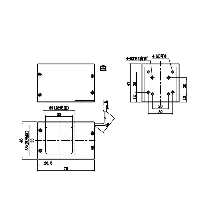 | 发光区尺寸 | 39 mm × 38 mm | |