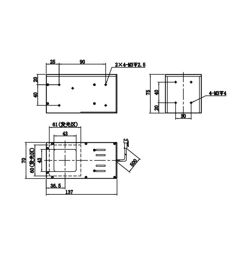 | 发光区尺寸 | 61 mm × 60 mm | |