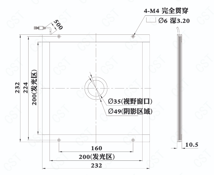 CST 康视达 CST-2KFS200200Y35-W 开孔侧部面光源