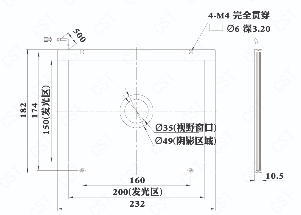 CST 康视达 CST-2KFS200150Y35-W 开孔侧部面光源