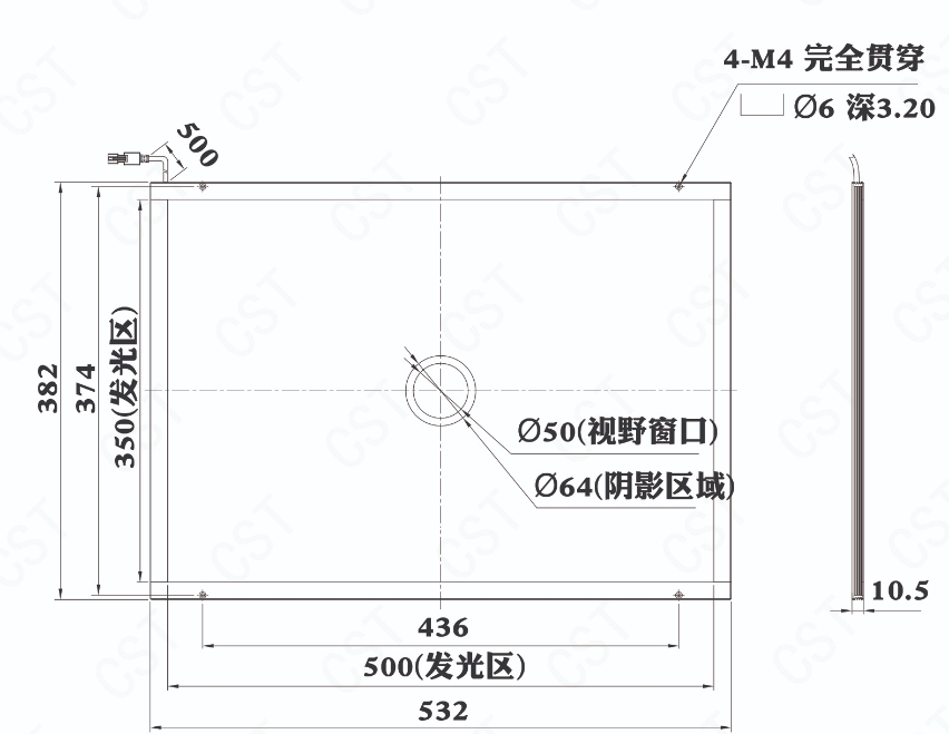 CST 康视达 CST-2KFS500350Y50-R 开孔侧部面光源