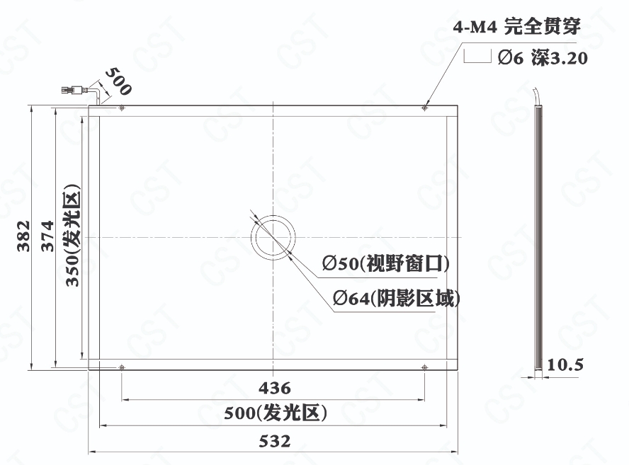 CST 康视达 CST-2KFS500350Y50-B 开孔侧部面光源