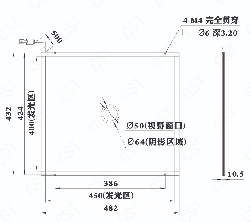 CST 康视达 CST-2KFS450400Y50-R 开孔侧部面光源