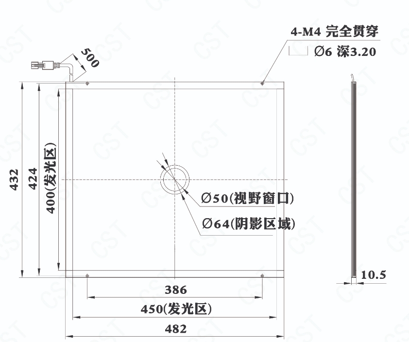 CST 康视达 CST-2KFS450400Y50-W 开孔侧部面光源