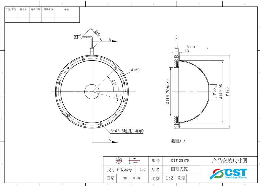 CST 康视达 CST-DS175-G 圆顶光源